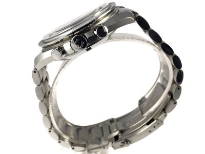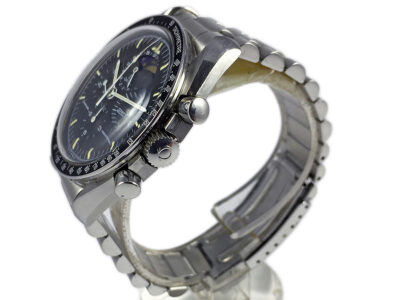 Omega fitted a plain dial made of anodised aluminium with speedmaster prints and service hands, change pushers and crown. The dial is not aftermarket or reprinted but made by Omega during the refurbishment process.
