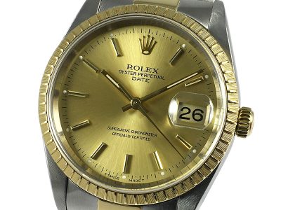 ROLEX OYSTER PERPETUAL DATE Yellow Gold & Steel – Champagne Dial |