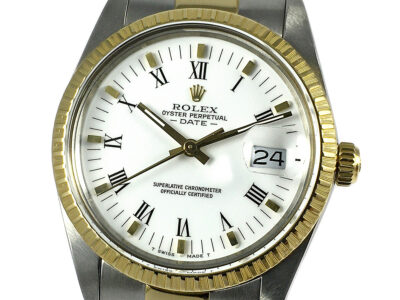 ROLEX OYSTER PERPETUAL DATE Yellow Gold & Steel – White Roman Dial |
