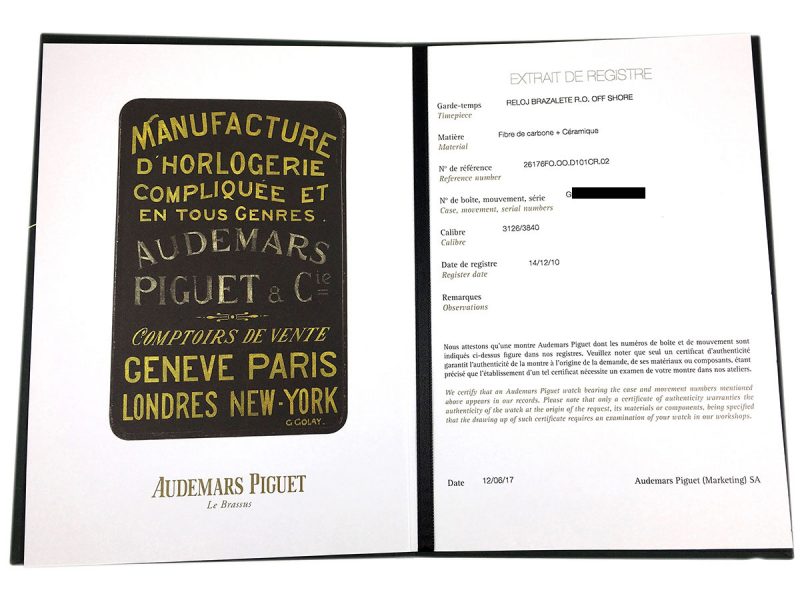 Garantía Vigente C.O. SI – (24 MESES C.O. AUDEMARS PIGUET)