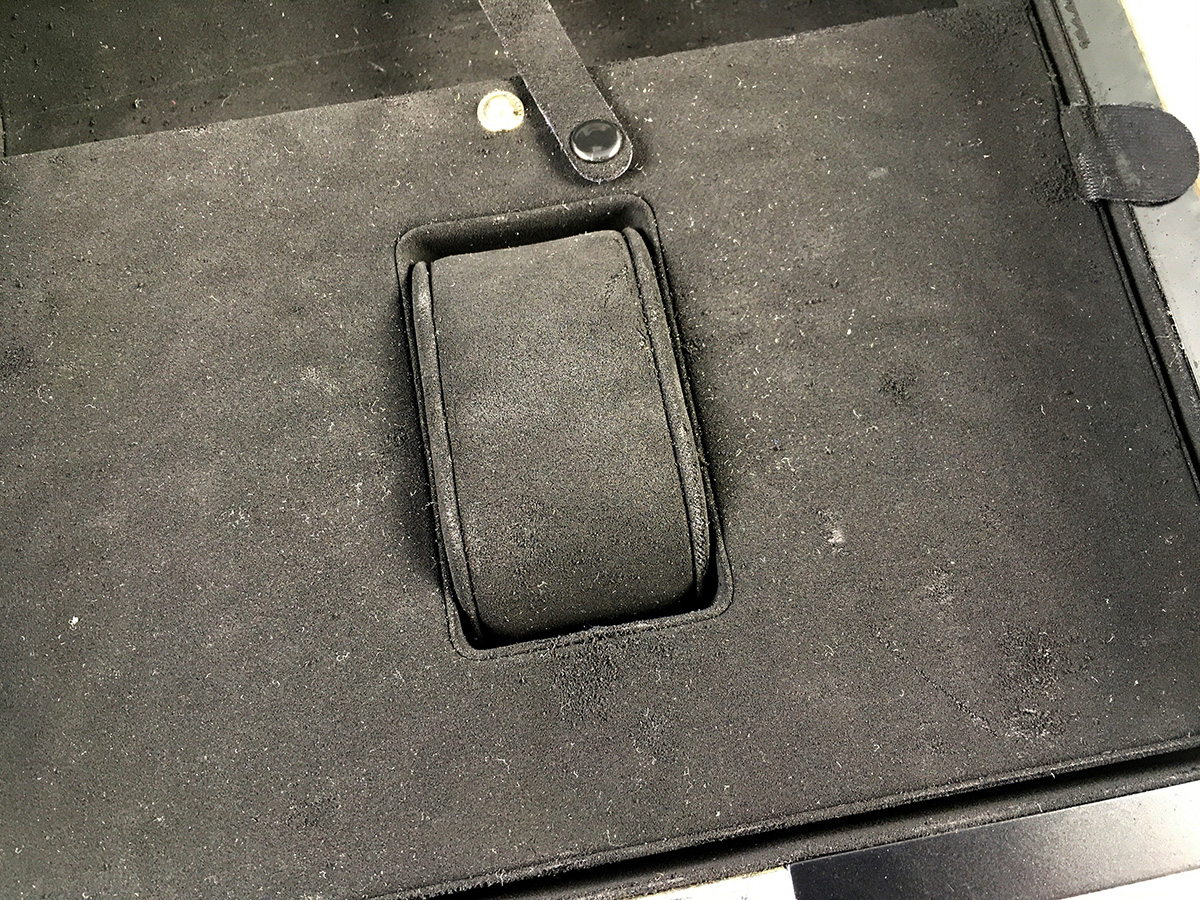 SI – Interior de estuche deteriorado, el material sintético se desprende al tacto. |